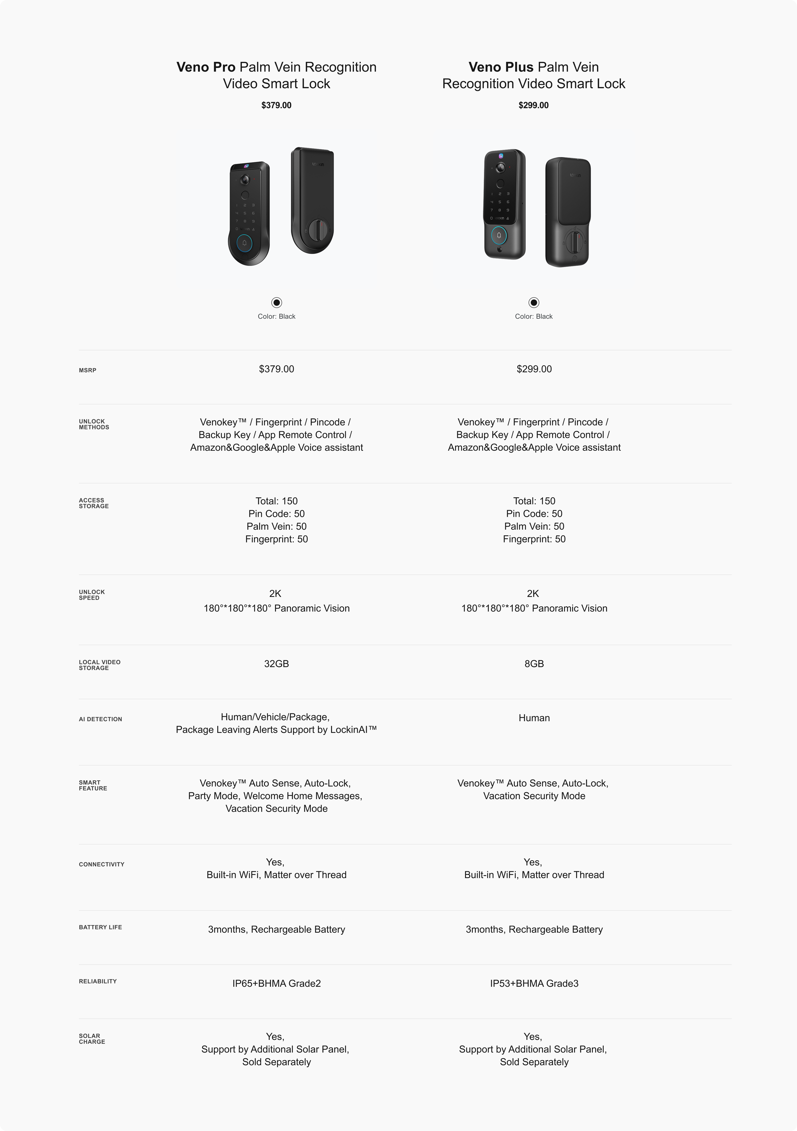 *Note that Lockin Veno series is not compatible with storm doors as the storm door may block the camera. We recommend that you ensure your door is a standard entry door without a storm door before installing this producct.