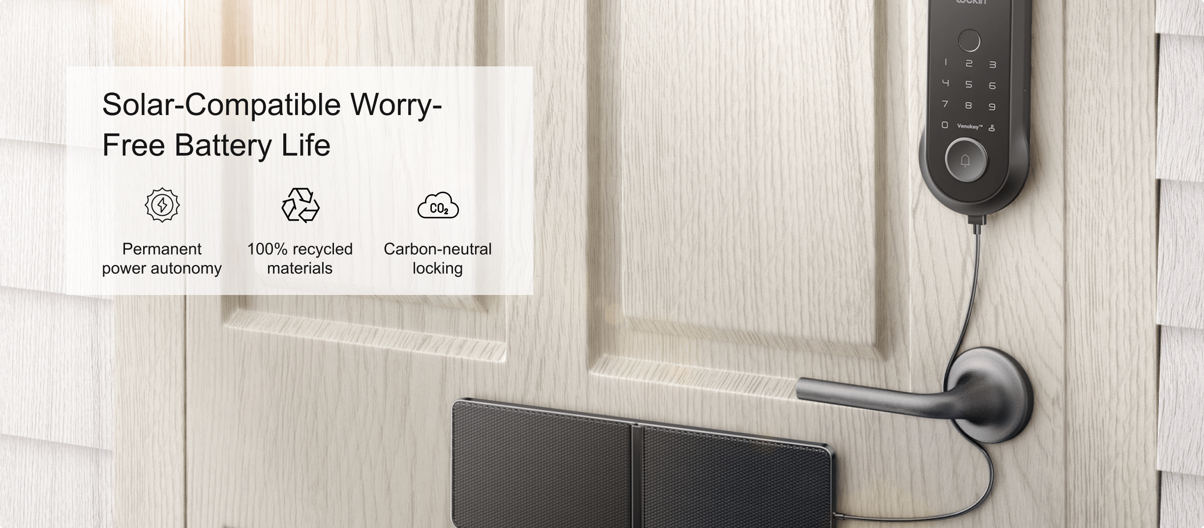 ・Long Battery Life: Up to 7 months of power with smart low-battery alerts. Unlock via power bank or key in emergencies. Add a solar panel (sold separately) for worry-free use.*